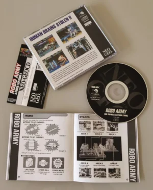 Robo Army é um jogo de ação e beat ‘em up lançado para Neo Geo CD em 1991. O jogo se passa em um futuro distópico, onde os jogadores assumem o controle de dois personagens, os guerreiros cibernéticos, que lutam contra uma horda de inimigos robóticos e criaturas mutantes. Com uma jogabilidade cooperativa para até dois jogadores, Robo Army permite que os jogadores se unam para enfrentar os desafios em níveis repletos de ação.
